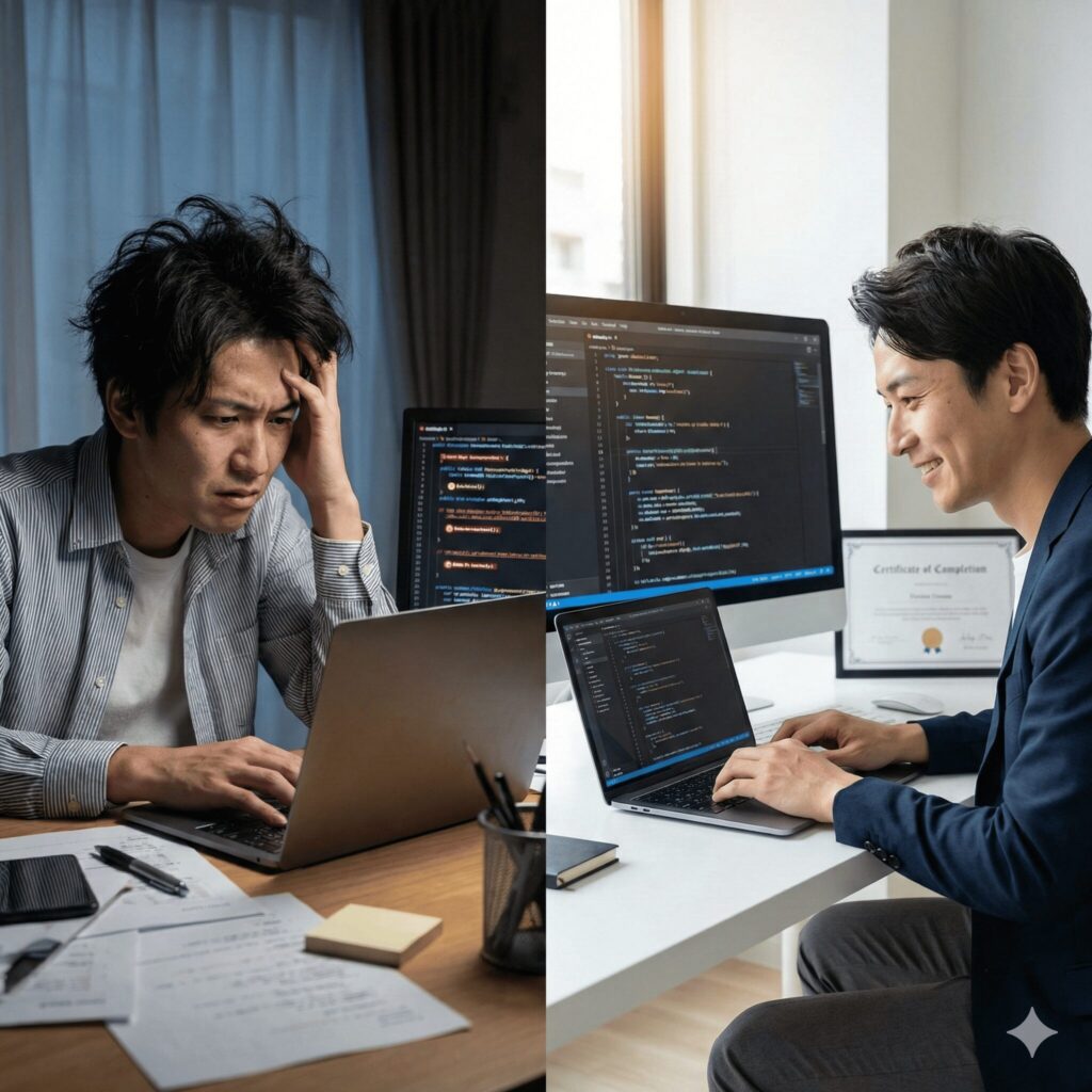 単にコードを書けるようになるだけでなく、 「リリース後に通用する、現場の解決策」 をセットで学ぶ。これこそが、独学や汎用的なスクールでは到達できない、本講座独自の価値です。