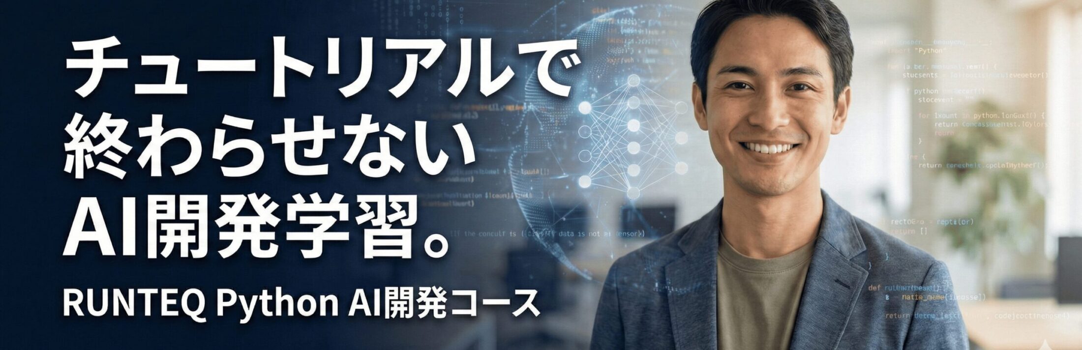RUNTEQは、Pythonを軸にWeb開発・AIアプリ開発までを実務レベルで学ぶスクール です。
